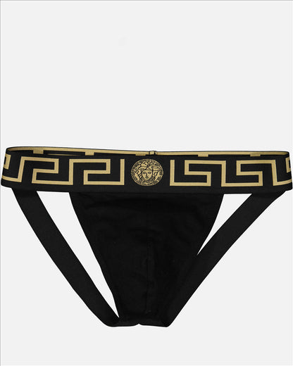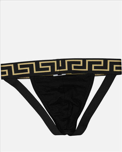 The Jock Strap Greca - Noir for Men by Versace is the epitome of luxury and sophistication. Crafted with meticulous attention to detail, this jock strap features the iconic greca pattern, synonymous with the Versace brand, providing both style and function.