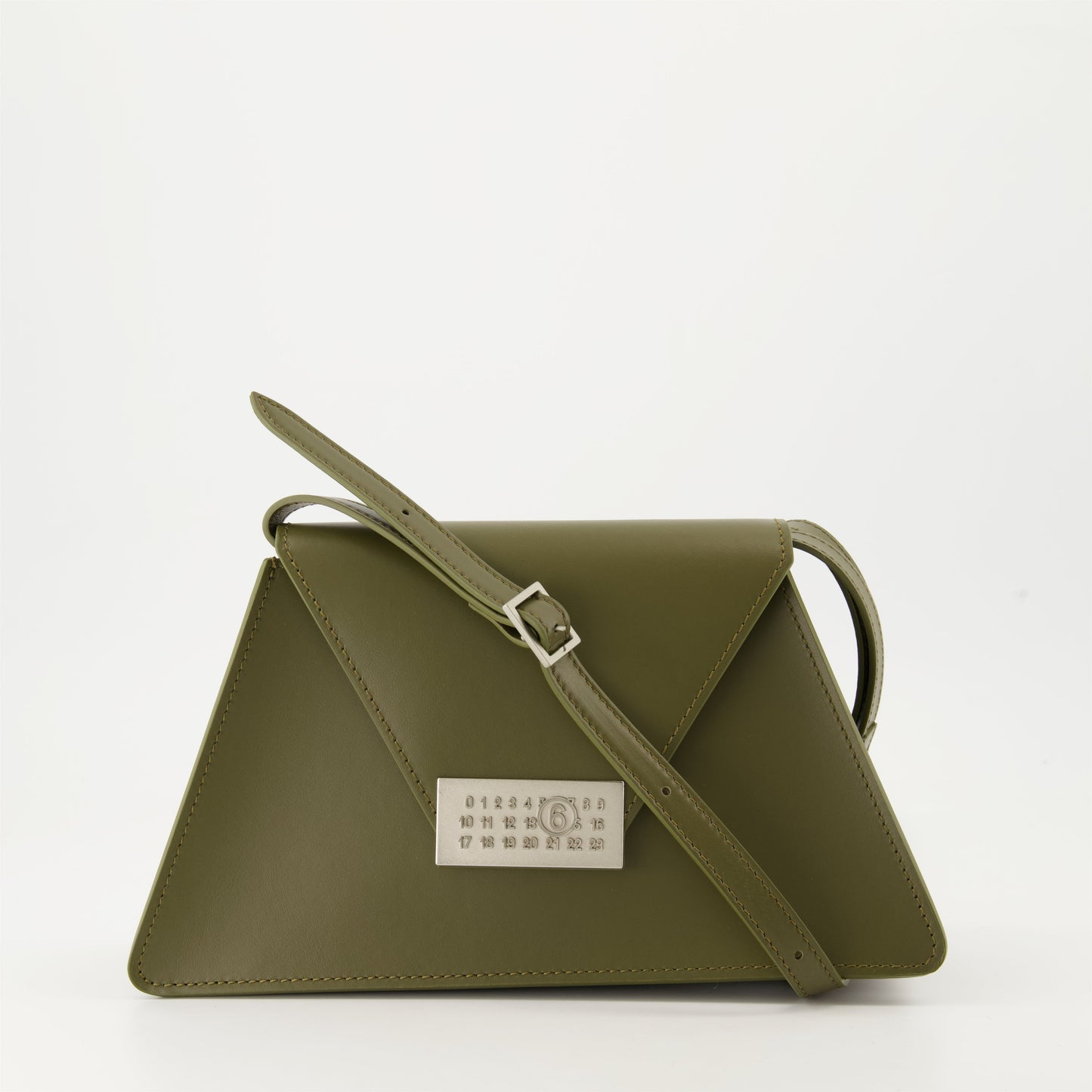 Elevate your accessory collection with the Khaki Leather Shoulder Bag by MM6, part of the prestigious Autumn-Winter 2024 lineup. This exquisite bag is fashioned from smooth, durable leather in a sophisticated khaki hue, perfectly balancing elegance and functionality.
