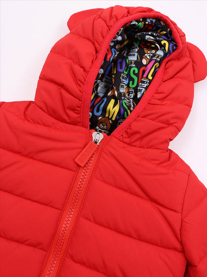 Moschino children jacket, luxury kidswear, red puffer jacket, designer kids coat, elegant winter wear