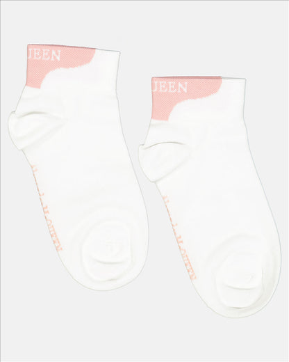 Discover these exquisite pink socks for women from the renowned brand Alexander McQueen. Featuring a short cut and distinctive embroidered logo, they will add a touch of elegance to your attire. With their ribbed edges, these socks provide comfortable wear throughout the day.