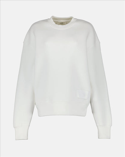 Discover the white logo tag sweatshirt by AMI Paris, an essential piece for a style that is both elegant and relaxed. This unisex model features a classic round neck, long sleeves, and a straight fit, ideal for all body shapes. The distinctive element is the carefully stitched logo tag on the garment, adding a touch of originality and luxury to your outfit.