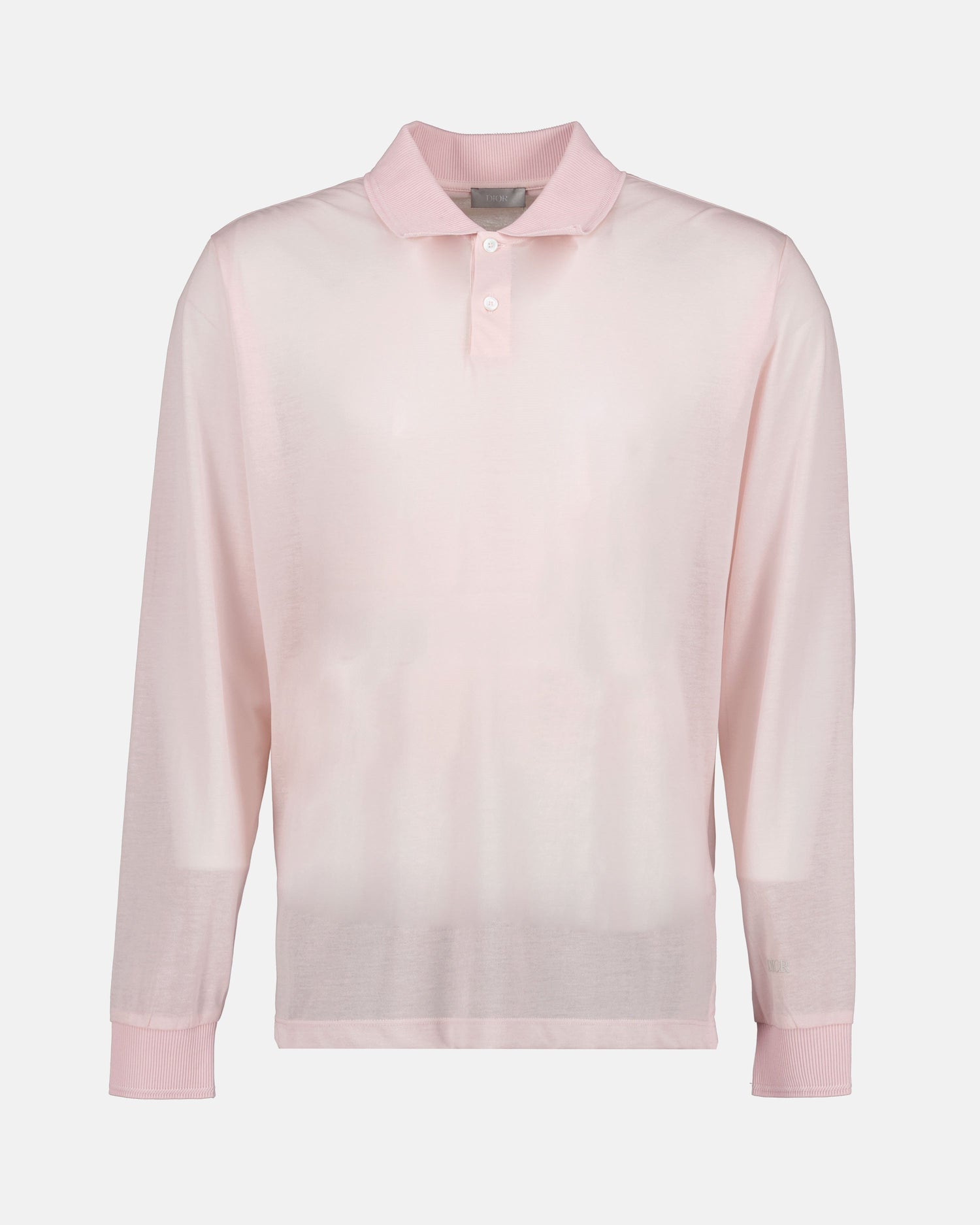 Elegance and style are the keywords of this pink long-sleeved polo for men by Dior. Crafted from high-quality, soft cotton, this polo is ideal for a casual yet chic outfit. With its slim fit, classic collar, and pale pink color palette, this polo is an essential piece in a man's wardrobe. The long sleeves add a touch of sophistication and make it suitable for any season. Whether it's for a workday or an outing, this polo will provide an impeccable finish to your ensemble.