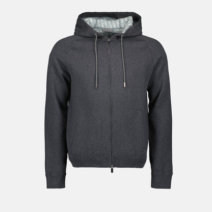 Introducing the grey cashmere jogging jacket, a masterpiece of contemporary luxury crafted by Dior. This elegant piece is designed with meticulous attention to detail, offering unparalleled comfort and timeless style. Made from high-quality cashmere, the jacket provides a soft and sumptuous feel against the skin, making it a perfect addition to the discerning gentleman's wardrobe.