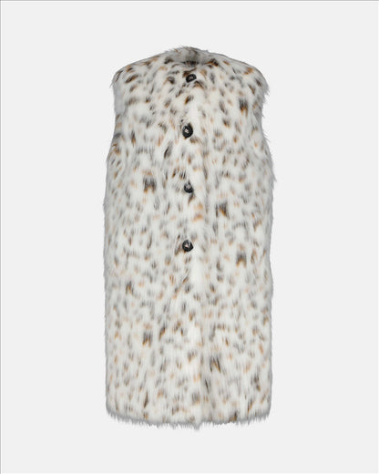 Indulge in the impeccable luxury and timeless elegance of the Dolce & Gabbana lynx-effect synthetic fur coat for women. Expertly crafted to replicate the authentic look and feel of lynx fur, this coat combines high-fashion appeal with ethical considerations.