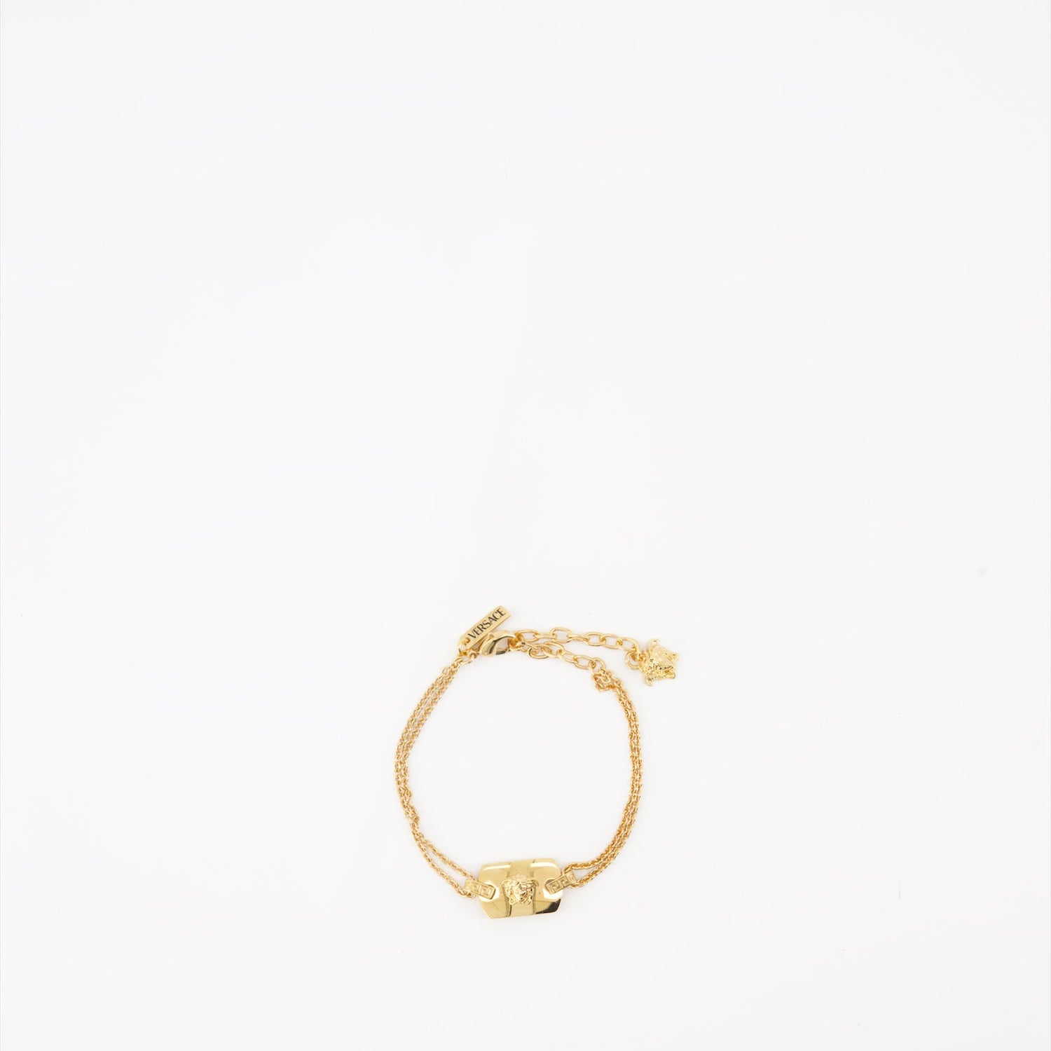 Discover the ultimate symbol of elegance with the Medusa Chain Bracelet by Versace. This exquisitely crafted bracelet features a luxurious gold-toned chain adorned with the iconic Medusa emblem, a hallmark of Versace's opulent design heritage. The bracelet exudes sophistication, making it the perfect addition to any high-end jewelry collection. Each link of the chain is meticulously designed to ensure a seamless blend of timeless style and contemporary allure. Whether worn as a statement piece or paired with other fine accessories, this Medusa Chain Bracelet is sure to captivate and impress.