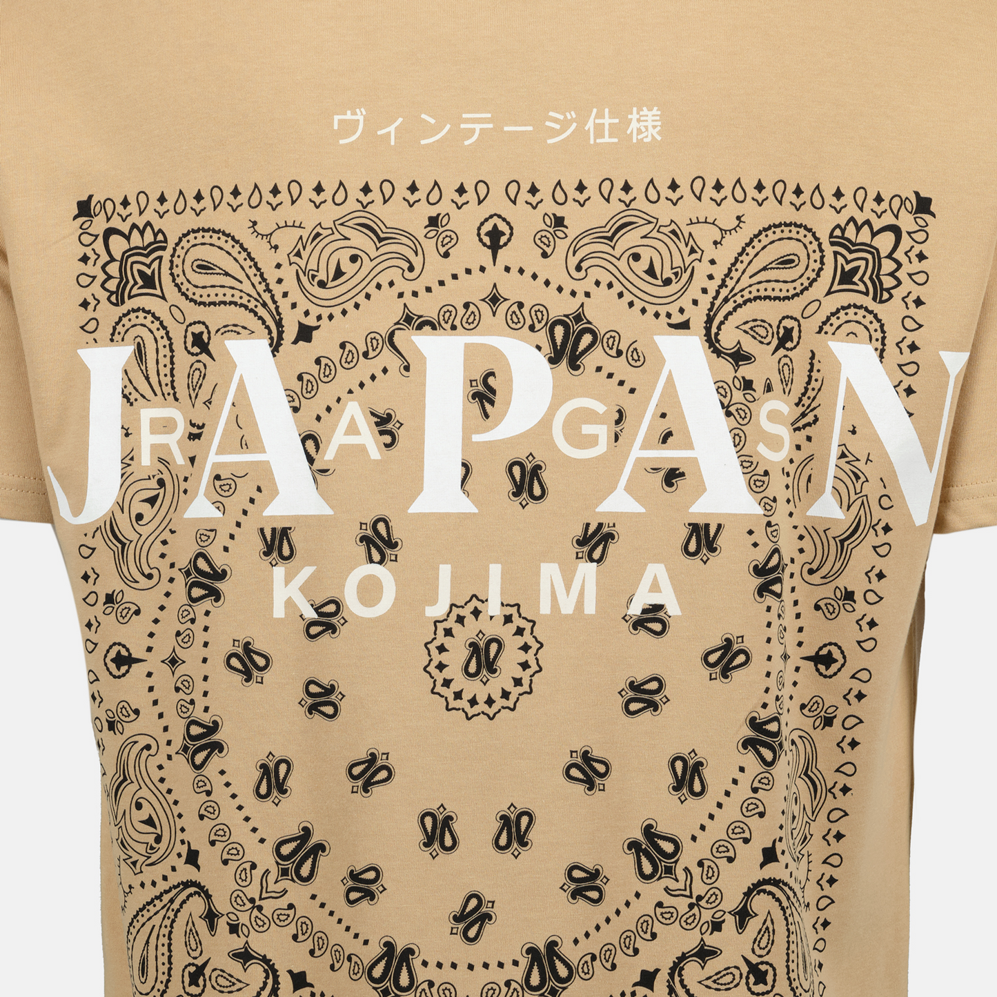 The Miki beige T-shirt by Japan Rag is a seamless blend of comfort and style. Made from soft, breathable cotton, it features a classic round neckline and short sleeves, ensuring a relaxed fit. This T-shirt showcases a unique Kojima print on the back, adding a distinctive touch to your casual wardrobe. Ideal for layering or wearing alone, this piece exemplifies everyday sophistication.