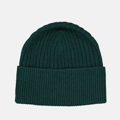 Moncler beanie, green logo beanie, luxury winter accessories, Moncler Grenoble, designer beanie