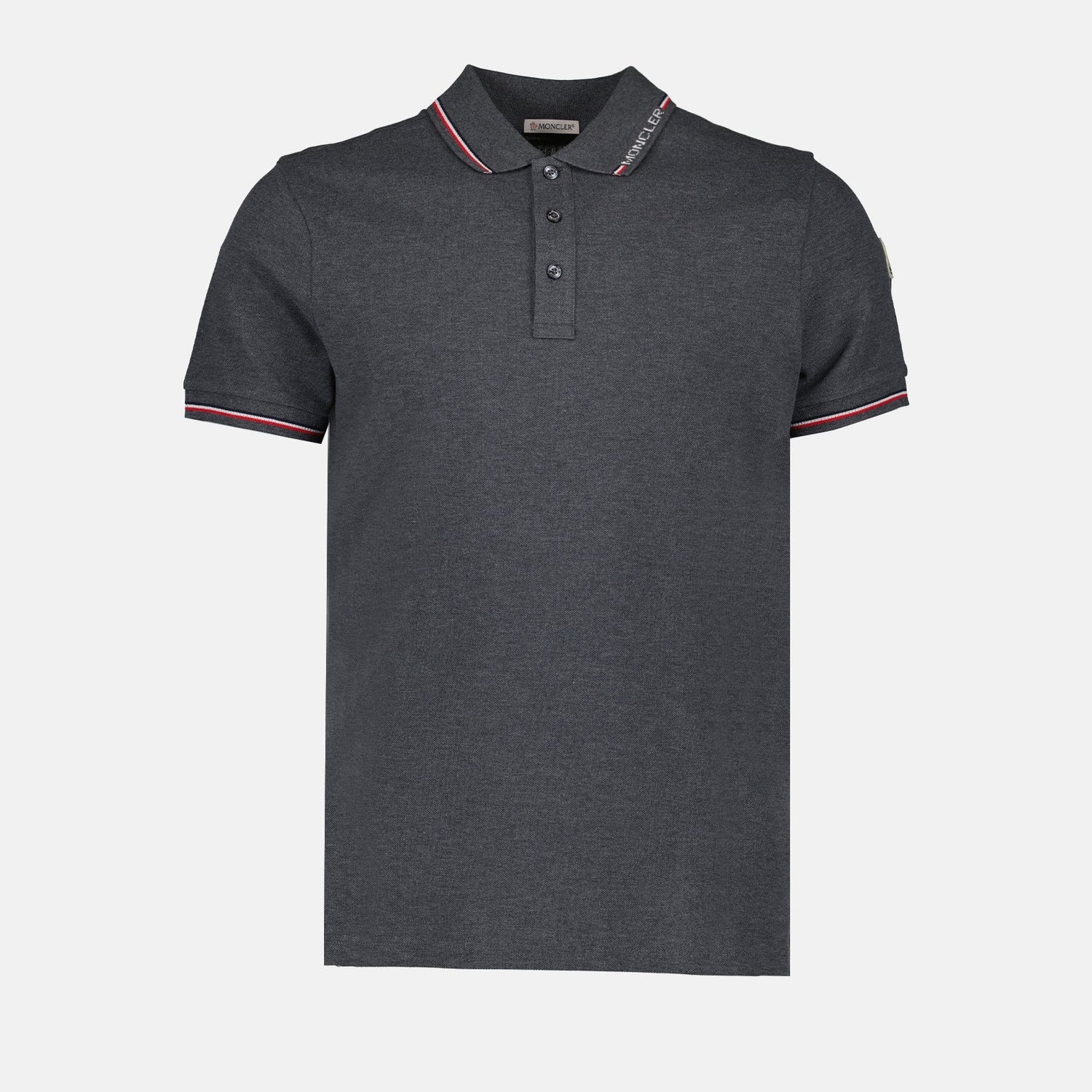 Discover the refinement of Moncler with this grey polo shirt crafted from premium cotton piqué. Its classic collar, short sleeves, and tailored fit offer a timeless elegance, while the three-button closure provides a clean line. The felted logo on the sleeve and woven logo on the collar showcase the brand's attention to detail. A contrasting trim on the collar and sleeves gives this polo shirt an extra touch of sophistication, making it a versatile addition to any gentleman’s wardrobe.