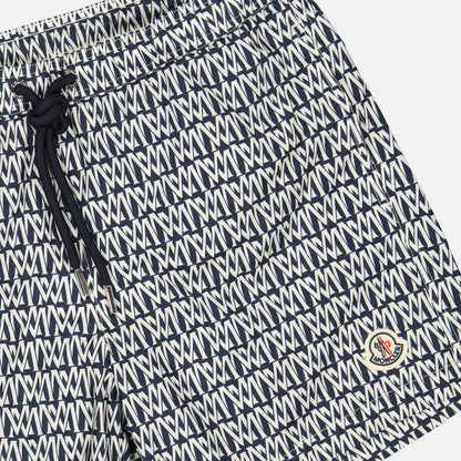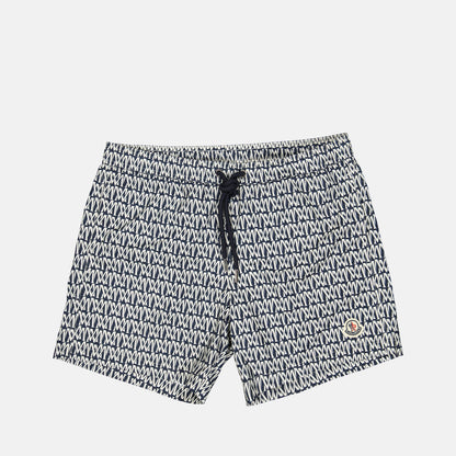 Introduce a touch of refinement to your swimwear collection with Moncler's monogrammed swim shorts. These luxurious swim shorts feature an intricate white and blue monogram pattern that exudes a subtle yet distinguished charm. Crafted with meticulous attention to detail, they combine style and comfort, making them an essential for any high-end vacation wardrobe.