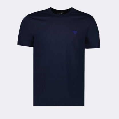 Introducing the Navy Blue Medusa T-shirt, a sophisticated addition to your luxury wardrobe. This elegant piece from Versace is crafted in high-quality cotton, ensuring comfort and durability. The T-shirt features the iconic Medusa emblem, symbolizing the brand's prestigious heritage. The deep navy blue hue adds a touch of understated elegance, making it a versatile choice for various occasions.