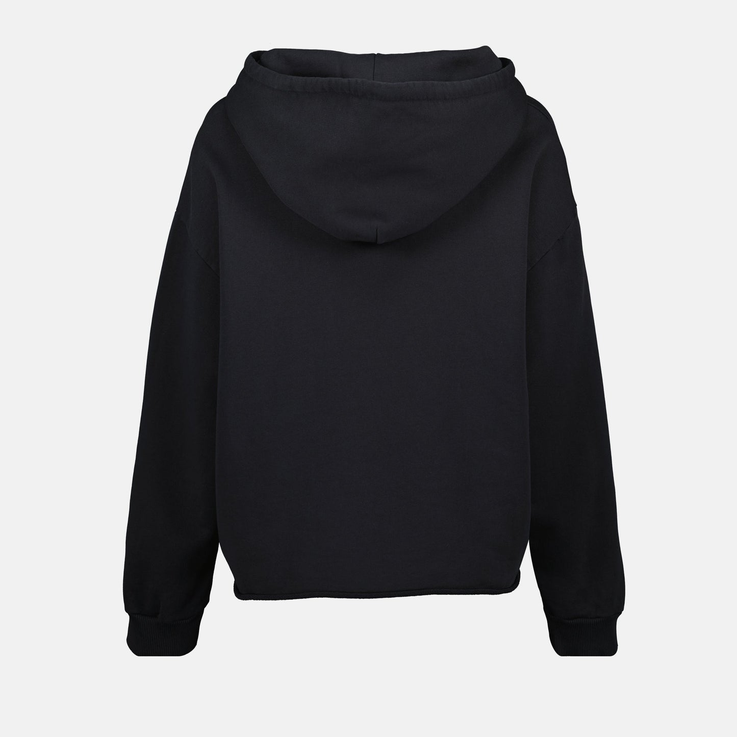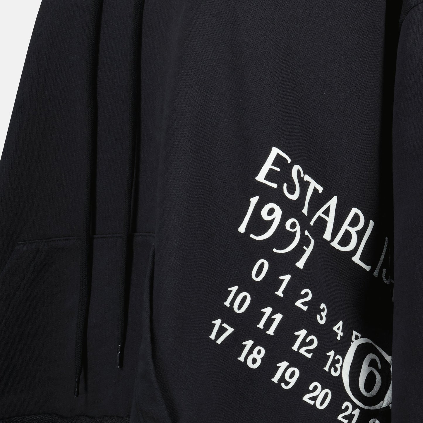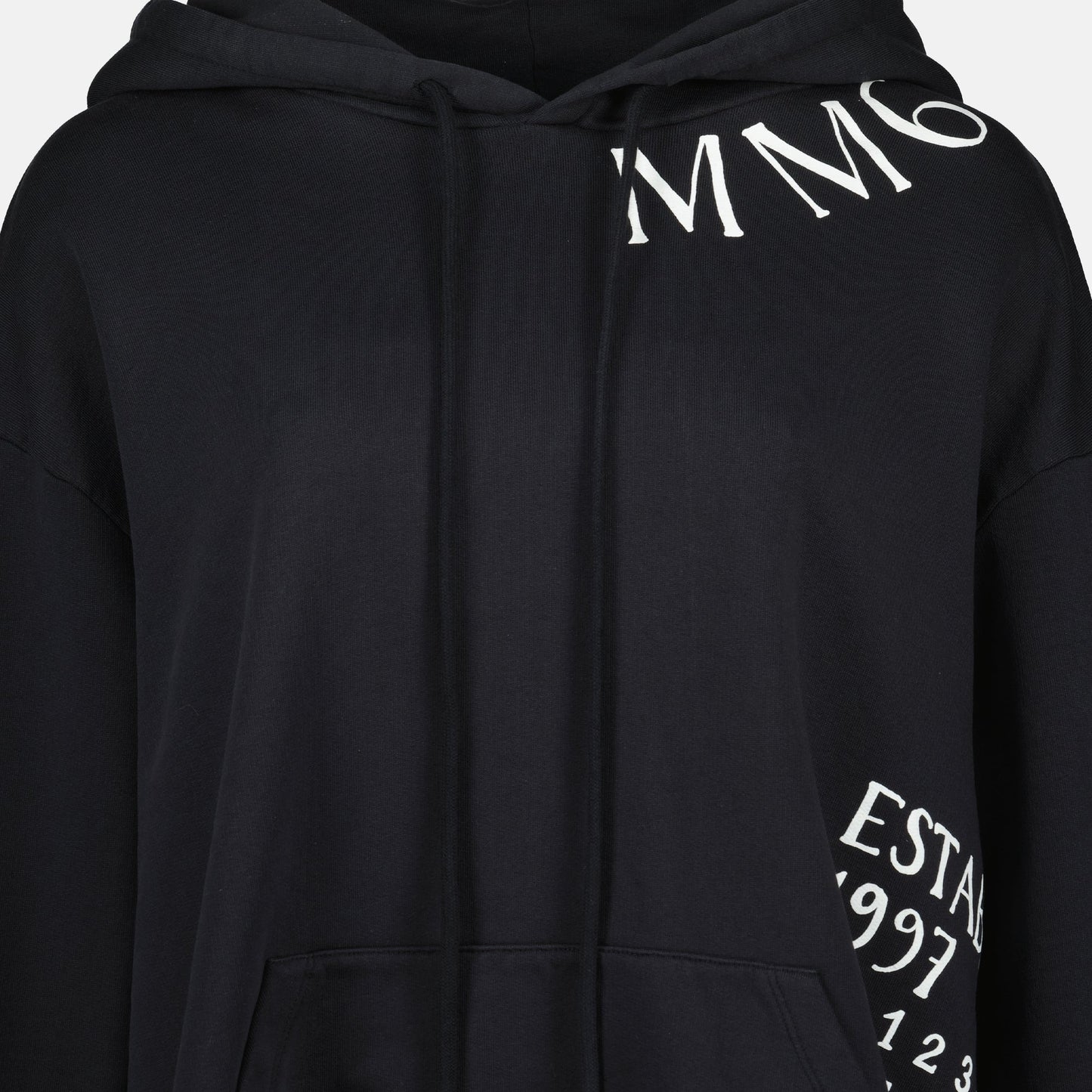 The Numeric hoodie from MM6 epitomizes contemporary style for the modern wardrobe. Crafted in a rich black cotton, it features a short cut that offers a fresh silhouette alongside long sleeves for added comfort. The adjustable hood, complete with a drawstring design, allows for personalized wear. A spacious kangaroo pocket adds practicality, while the bold Numeric logo adds a striking visual element to this staple piece. Ideal for layering or wearing solo, this hoodie seamlessly combines comfort with versatility for everyday elegance.