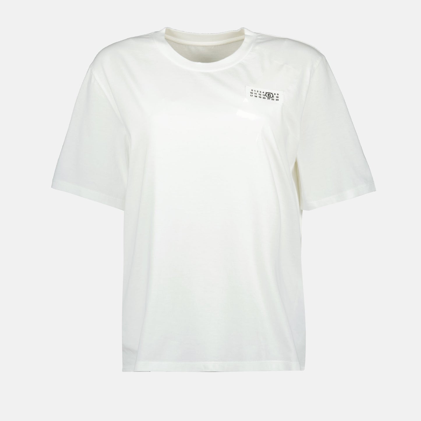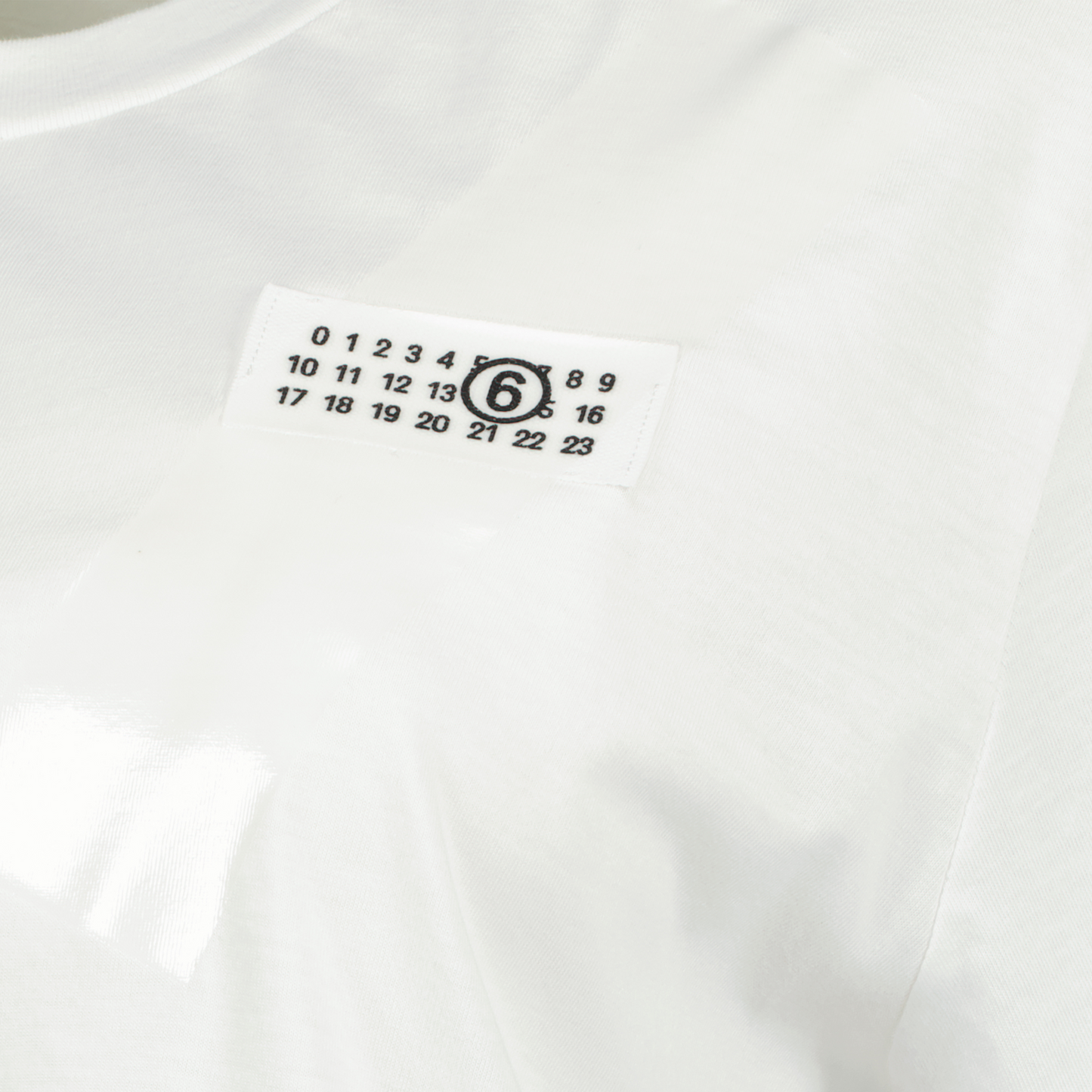 Introducing the Numeric T-shirt in white, an embodiment of contemporary style brought to you by MM6. This t-shirt showcases a round neckline and short sleeves, designed with an oversized fit for an effortless look. The signature Numeric MM6 logo is elegantly stitched on the front, adding a subtle touch of brand identity. Crafted from soft cotton jersey, this piece promises comfort and versatility, making it an ideal addition to your seasonal wardrobe.