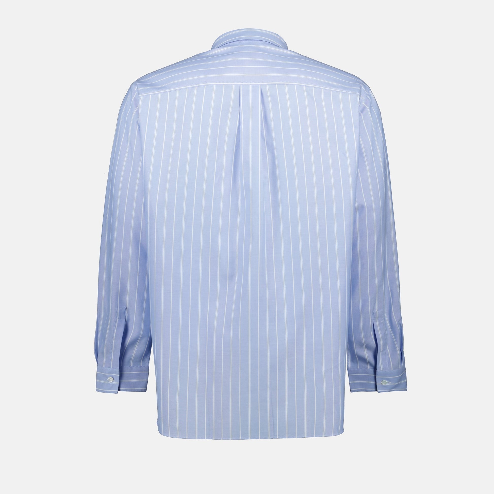 Experience a blend of style and comfort with the oversized blue shirt from the Dior and Hylton Nel collaboration. This shirt is designed with a classic collar and features long sleeves, embroidered logo on the chest, and buttoned cuffs for a refined touch. With a front patch pocket and crafted from premium cotton, it embodies casual elegance, making it a staple for your Spring-Summer 2025 wardrobe. This piece not only showcases designer craftsmanship but also provides a relaxed fit that pairs effortlessly with a variety of looks. Ideal for those who appreciate unique collaborations and quality fabrics.