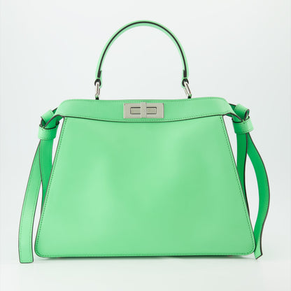 Introducing the Fendi Peekaboo ISeeU Bag, an epitome of modern elegance and sophistication. This luxurious handbag is presented in a stunning green shade that effortlessly complements a high-end wardrobe. Crafted with the utmost attention to detail, this bag is designed to make a statement while offering practical functionality.
