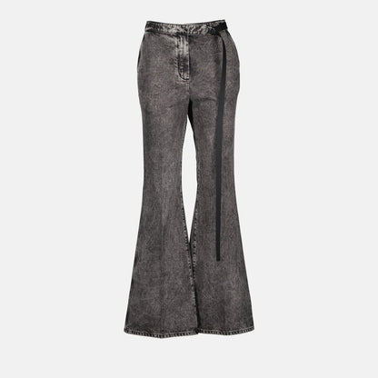 The Fendi Black Denim Trousers for women are a masterpiece of luxurious craftsmanship and modern design. Tailored to perfection, these trousers feature a sleek, black denim fabric that blends comfort with high-end fashion. The rich texture and impeccable fit make them a versatile addition to any wardrobe, seamlessly transitioning from casual to sophisticated looks.