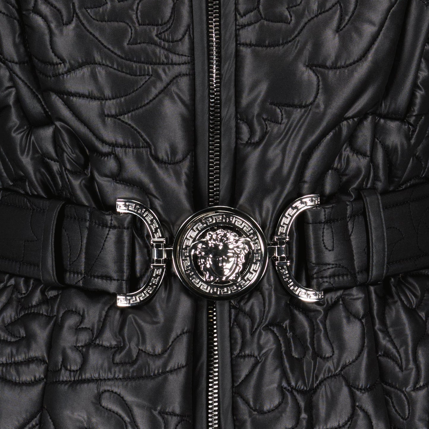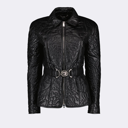 Embrace an exquisite blend of style and comfort with the Quilted Barocco Black Jacket. This elegant piece by Versace showcases a sophisticated Barocco print, a testament to Versace's commitment to luxury and intricate design. Crafted meticulously for the discerning individual, this jacket features a quilted construction that ensures optimum warmth while maintaining a sleek silhouette. The rich black tone enhances its versatility, making it an ideal addition to any wardrobe. Elevate your outerwear collection with this timeless masterpiece from Versace.