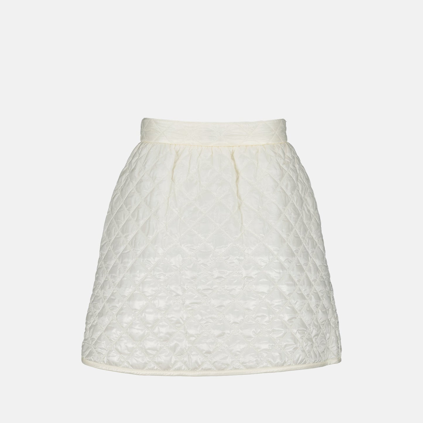 Whether you're attending a high-profile event or seeking to make a chic impression, this Quilted White Skirt by Moncler is your go-to choice. Experience the audacious blend of fashion and function with this stunning piece.