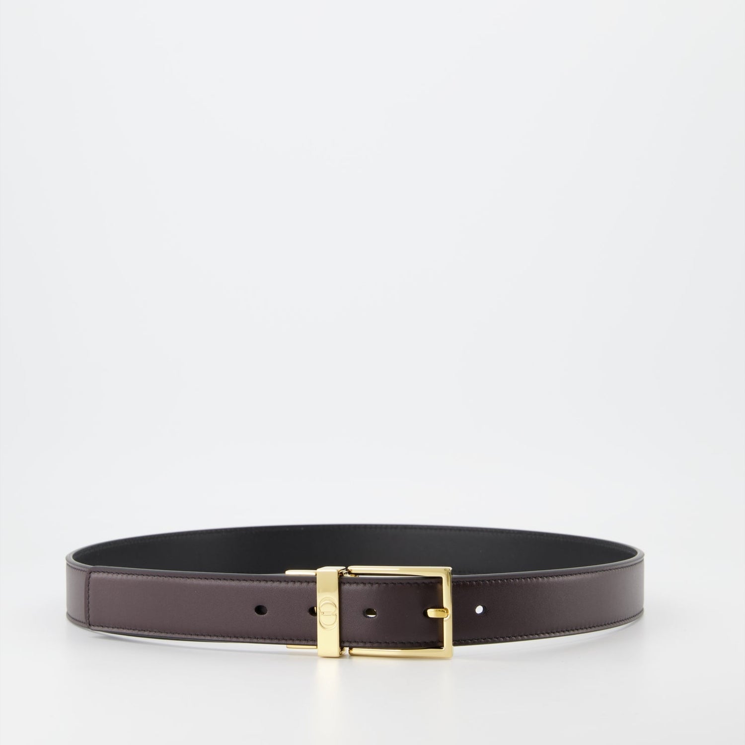 The Reversible Brown-Black Belt by Dior is a true embodiment of elegance and versatility, designed for the modern gentleman. Crafted with meticulous attention to detail, this belt effortlessly combines function and style. On one side, it features a rich brown leather that exudes warmth and sophistication. Flip it over, and you have a classic black alternative, perfect for more formal occasions. The belt is finished with a sleek metallic buckle engraved with the Dior logo, adding a touch of luxury and refinement. Its reversible design makes it a practical yet stylish addition to any high-end wardrobe. Whether paired with a tailored suit or casual chinos, this belt offers the perfect finishing touch, embodying Dior's signature sophistication. Dimensions and precise craftsmanship ensure a comfortable fit, transforming any ensemble into a statement of style and elegance. Dior’s mastery in luxury accessory design is evident in every detail of this exquisite reversible belt.