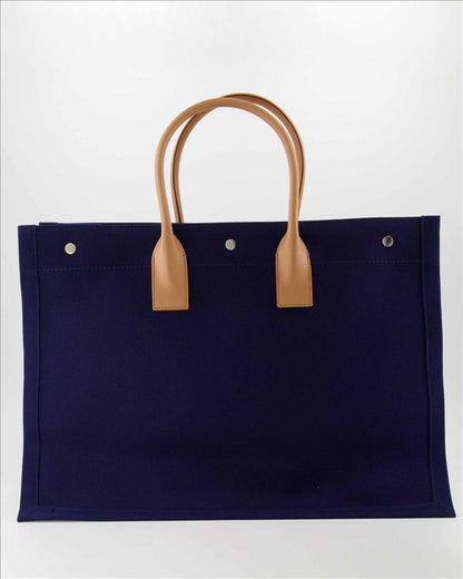 Discover our blue Rive Gauche tote bag from Saint Laurent, an essential accessory for the modern man. Crafted from high-quality linen canvas, this bag is both durable and stylish. The fixed leather handles and the adjustable and removable shoulder strap offer comfort and versatile use. The snap button closure ensures optimal security for your personal belongings. With its printed logo and contrasting trim, this tote bag stands out while remaining understated. The interior zippered pocket is ideal for keeping your most valuable items safe. • Fixed handles and adjustable and removable shoulder strap • Snap button closure • Printed logo • Contrasting trim • Interior zippered pocket • Made from linen canvas • Leather handles