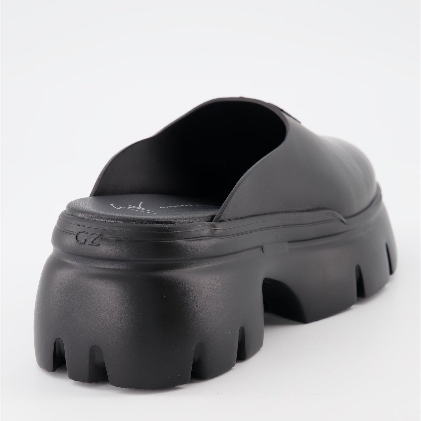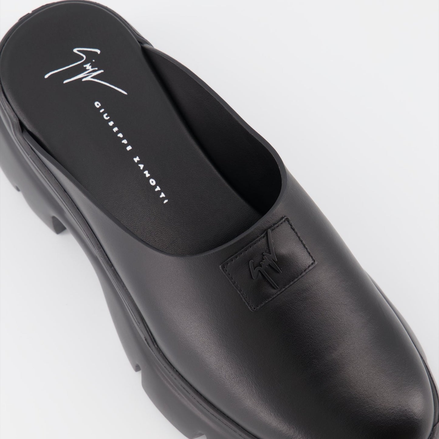 Step into the world of luxury with Giuseppe Zanotti's Sabot Apocalypse Leather Clogs, where every detail speaks of high-end fashion and uncompromising quality.
