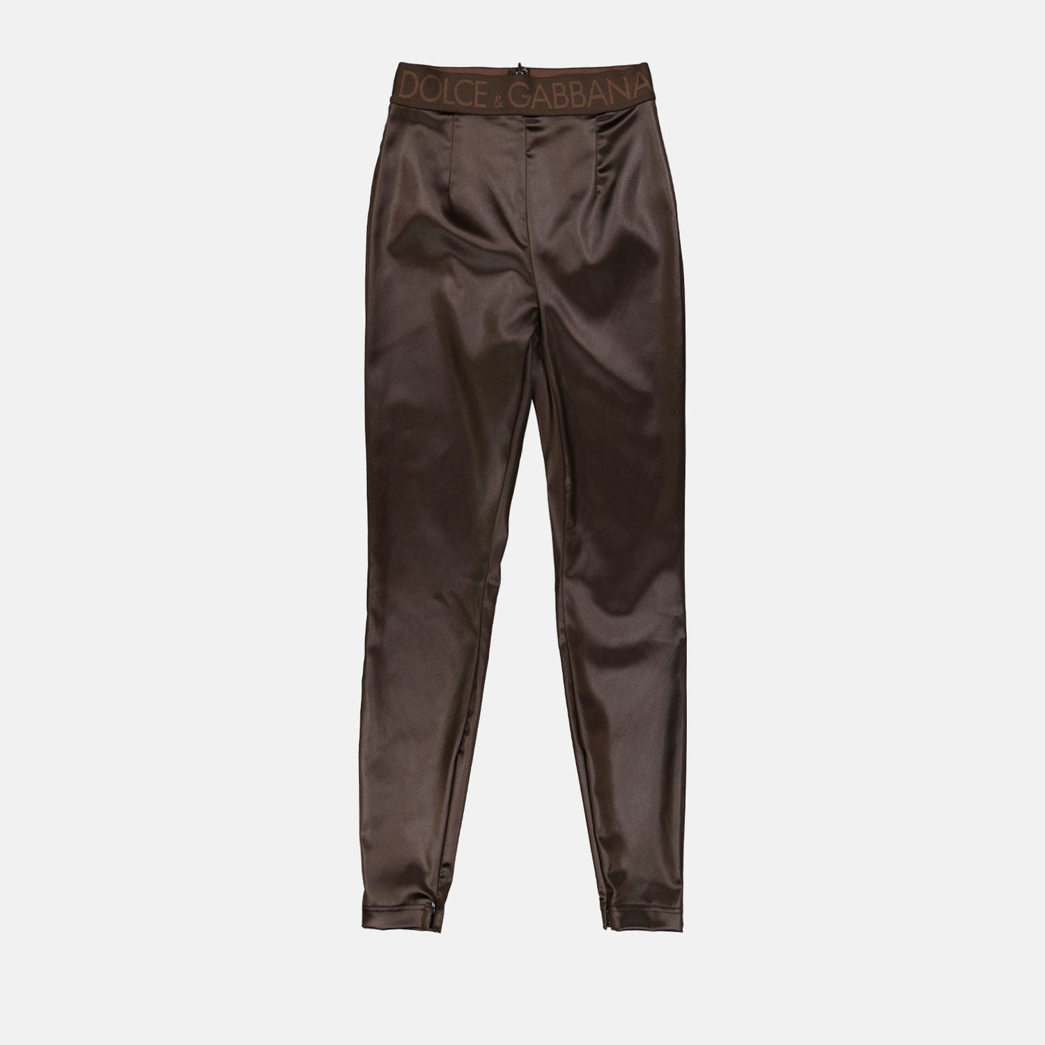 Indulge in the luxurious feel of these exquisite brown satin leggings from Dolce & Gabbana. Crafted to perfection, the soft satin material drapes effortlessly, providing both a flattering fit and unparalleled comfort. The rich brown hue adds a touch of sophistication, making these leggings a versatile addition to any refined wardrobe. Whether you're dressing up for a night out or seeking something chic yet comfortable for day-to-day wear, these leggings are a timeless investment in style and elegance.