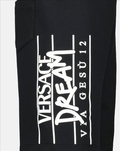 Discover the iconic style of Versace with these children's shorts, designed to bring a touch of luxury to your little ones' wardrobe. Made from high-quality pure cotton, these black shorts feature the emblematic Versace Dream Via Gesù print, adding a hint of sophistication and prestige. The elastic waistband ensures a comfortable fit, while the patch back pocket offers functionality and style. Its longer cut provides timeless elegance, perfect for summer days or casual events. Give your children the luxury of comfort and design with these exquisite Versace shorts.