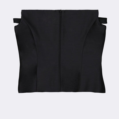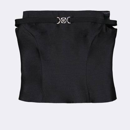 The rich fabric beautifully contours the figure, creating a flattering silhouette that is both bold and elegant. The versatile design makes it an ideal piece for both formal occasions and upscale casual outings. With its refined details and exceptional quality, the Bustier Medusa '95 is more than just a garment—it's a statement of style and luxury.