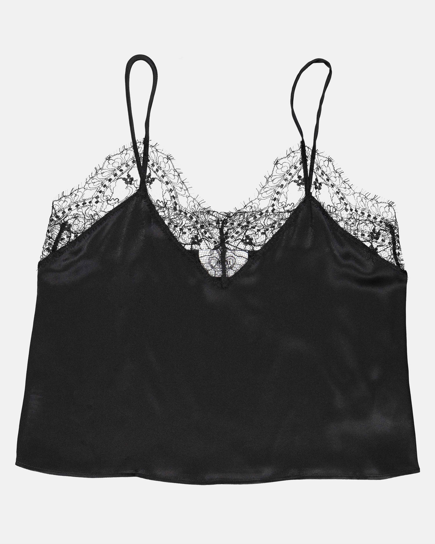 Fall for this exquisite silk top with black lace from AMI Paris. This feminine blouse features a V-neck and delicate straps, flattering your figure with a straight cut. Crafted from high-quality silk, the top is enhanced by a lace neckline, adding a touch of romance and sophistication. Perfect for a stylish outing or a special occasion, this top is a must-have for your wardrobe.