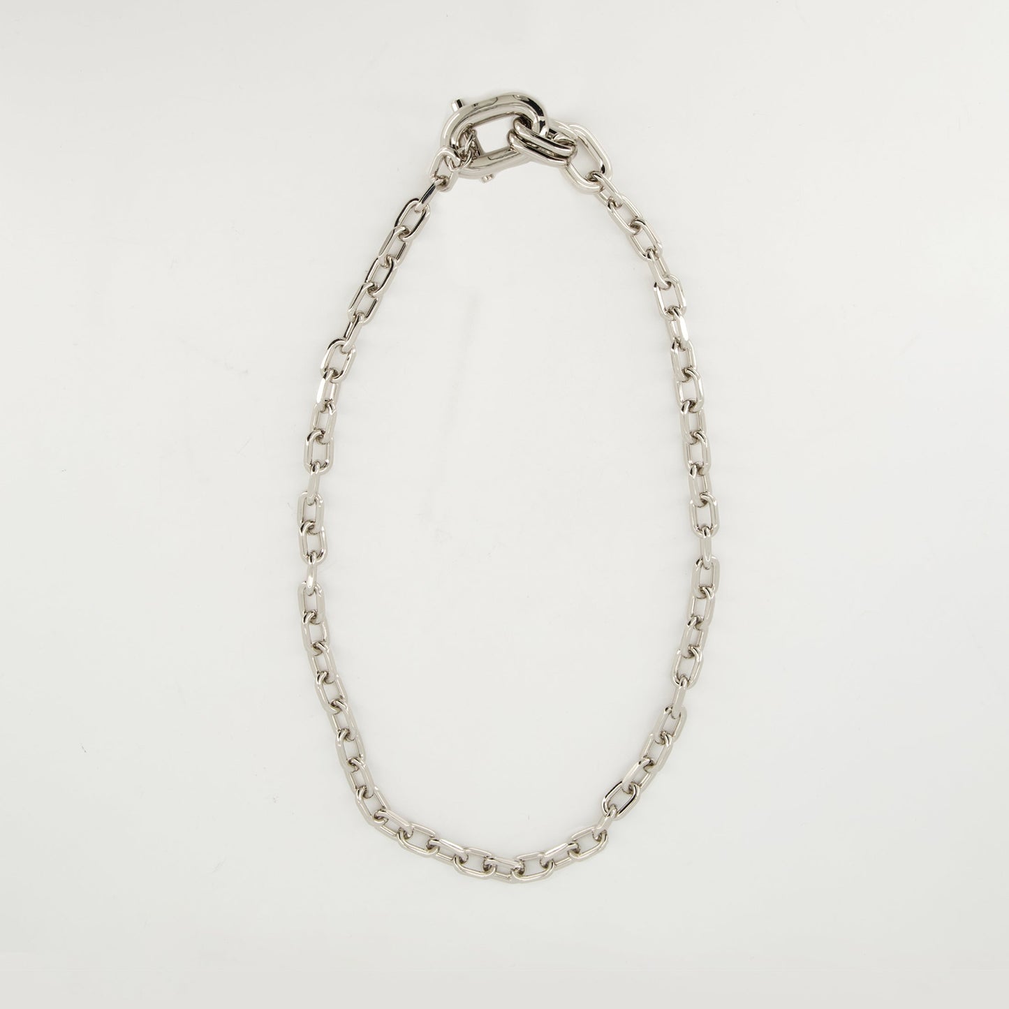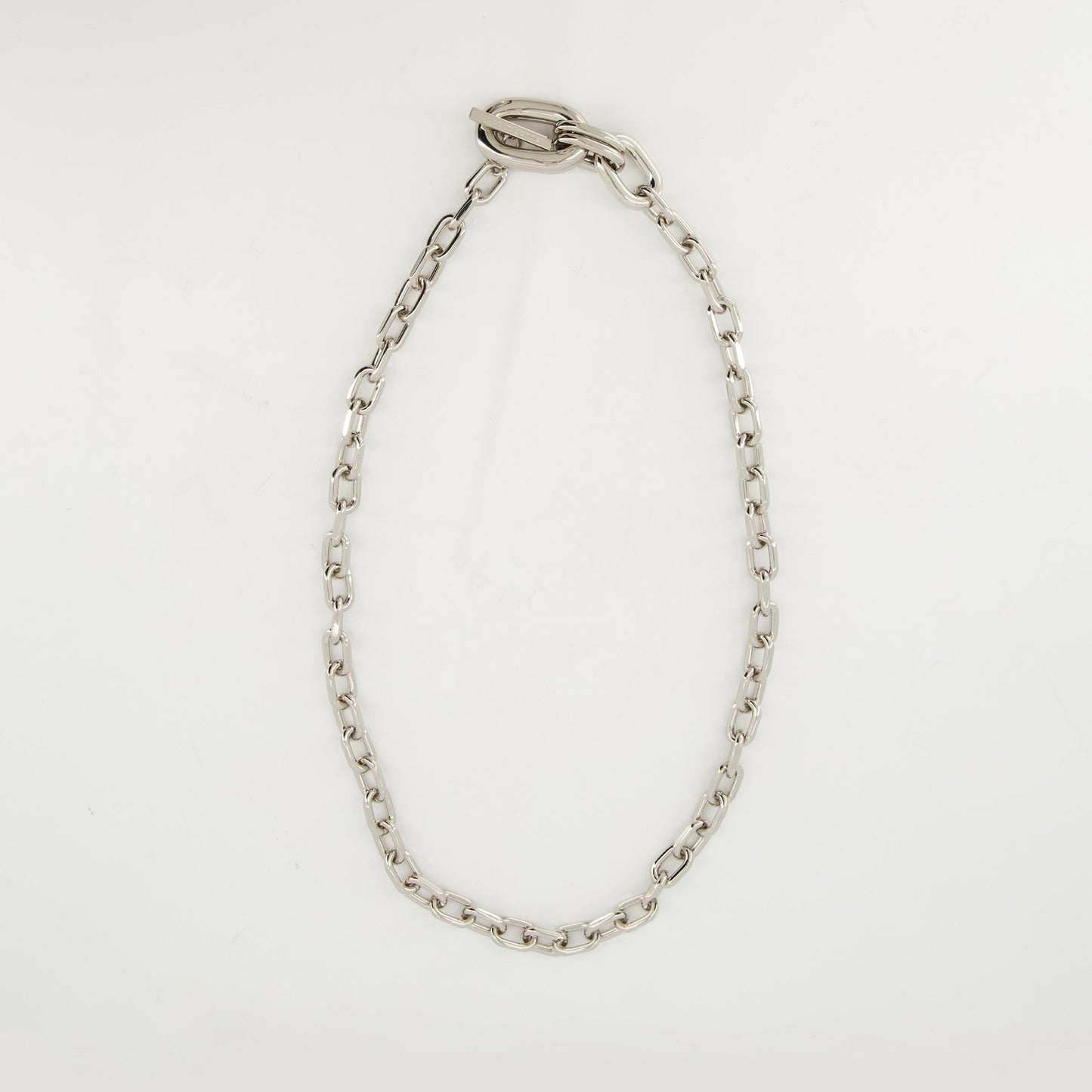 Discover the stunning Silver Link Necklace from Rabanne, a captivating piece from the Spring-Summer 2025 collection. This exquisite necklace showcases a refined design crafted from high-quality aluminum and brass, exuding a contemporary charm. The T-bar closure adds a distinctive touch, while the engraved logo offers a subtle nod to sophistication. Perfect for elevating any ensemble, this elegant piece embodies a blend of modern artistry and timeless appeal.