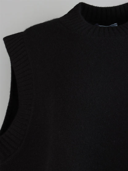 Unveil timeless elegance with the Prada Sleeveless Wool Sweater, designed exclusively for women who appreciate luxury and sophistication. This chic black wool sweater offers a classic silhouette with modern appeal, crafted meticulously to highlight Prada's commitment to quality and style. The sleeveless design ensures versatile layering possibilities, making it an indispensable piece for your luxurious wardrobe. Embrace the subtle luxury that only Prada can provide with this exquisite garment.
