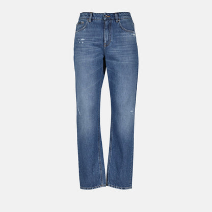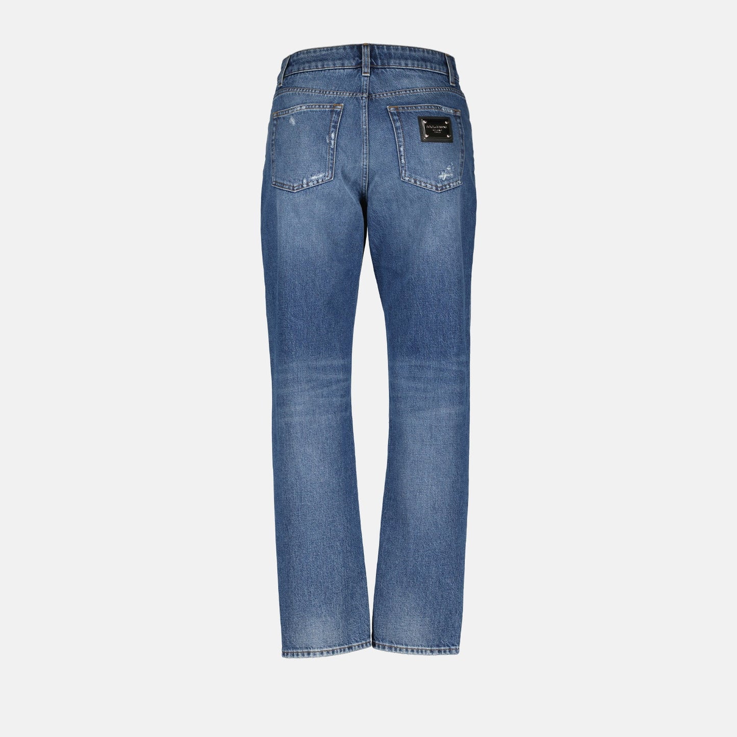 Introduce a touch of timeless elegance to your wardrobe with these straight washed jeans from the revered house of Dolce & Gabbana. Crafted to perfection, these jeans offer a flattering straight-leg silhouette that complements a variety of looks. The sophisticated wash adds a subtle vintage charm to your ensemble, while the logo plaque discreetly showcases the brand's luxurious flair. These jeans epitomize a blend of modernity and classic design, creating a versatile piece for any occasion. Whether paired with casual tops or more formal wear, this piece is designed to elevate your style with understated elegance.