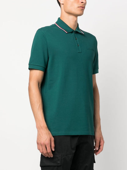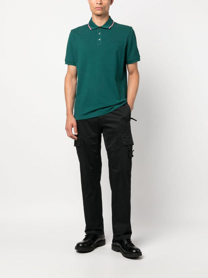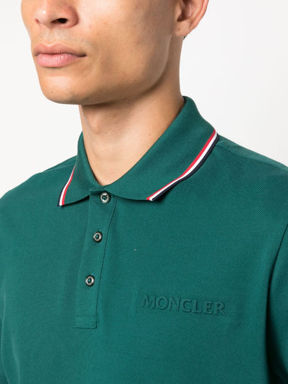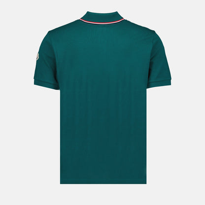 Moncler, green polo shirt, men's luxury polo, logo trim polo, designer menswear