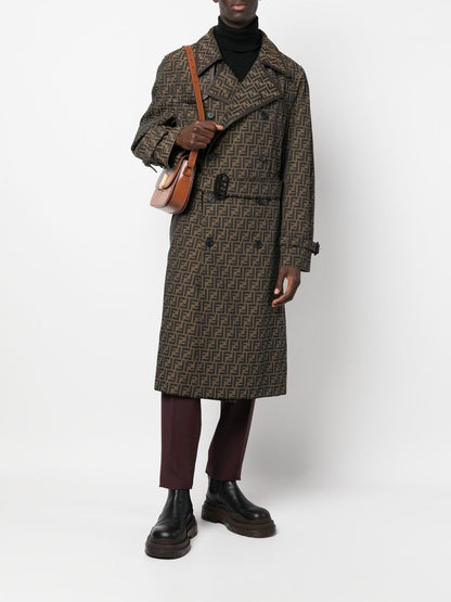Fendi trench-coat, Brown trench-coat, Men's luxury coat, Designer outerwear, Fendi FF belt coat
