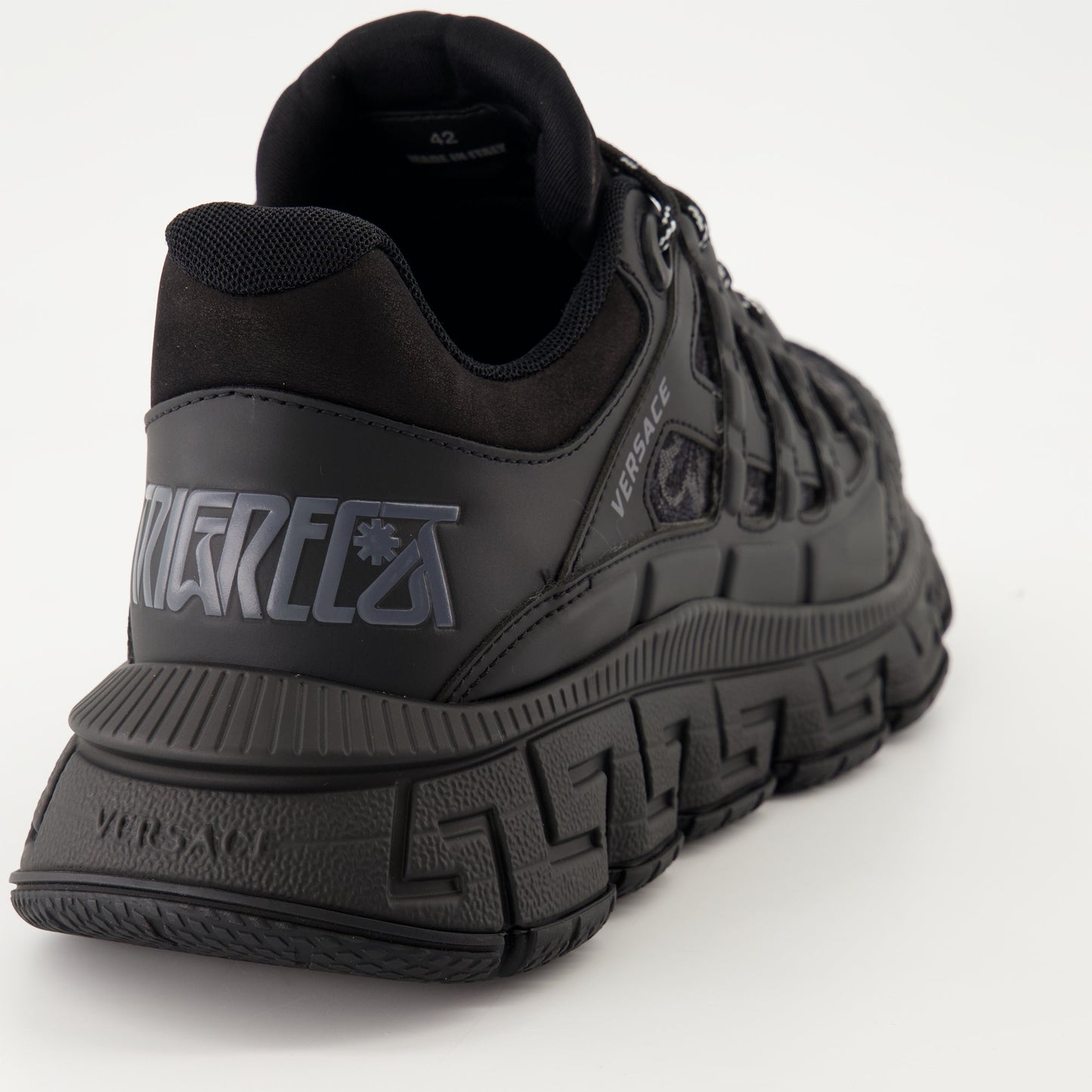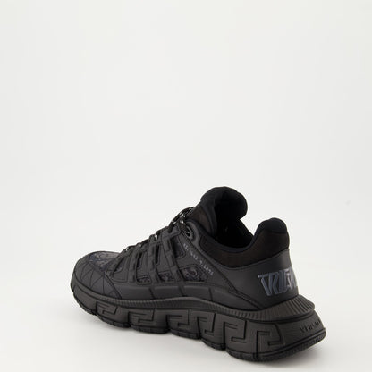 Introducing the Trigreca Barocco sneakers from Versace's Autumn-Winter 2024 collection, a blend of luxury and performance. These sneakers are meticulously crafted from high-quality technical fabric and leather, showcasing the iconic Barocco print. The design features an almond-shaped toe and a rugged rubber sole, offering both style and durability. Elevate your footwear collection with these statement-making sneakers that effortlessly combine fashion and function.