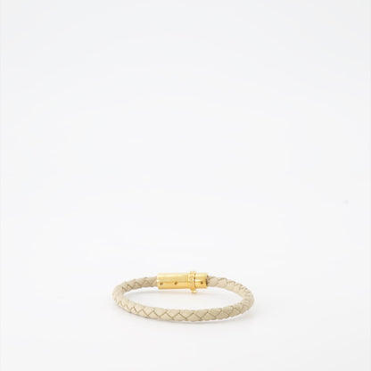 Elevate your accessory collection with the Versace Beige Braided Leather Bracelet, a piece that exudes timeless elegance and sophistication. Crafted with meticulous attention to detail, this bracelet features intricately braided beige leather that combines style and durability. The subtle shine of the leather enhances its luxurious appeal, making it a must-have accessory for fashion connoisseurs.