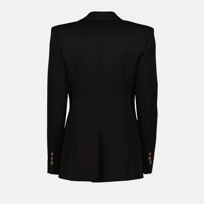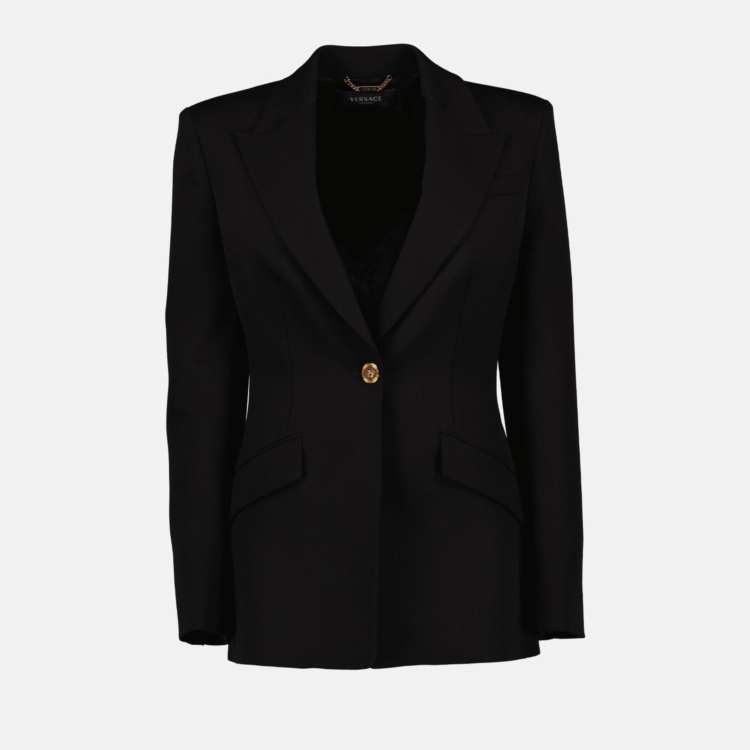 Immerse yourself in sophistication with the Versace Wool Blazer for Women. This impeccably tailored piece showcases Versace's renowned craftsmanship and attention to detail. The blazer features a classic cut, with sharp lapels and a structured fit, effortlessly enhancing your silhouette.