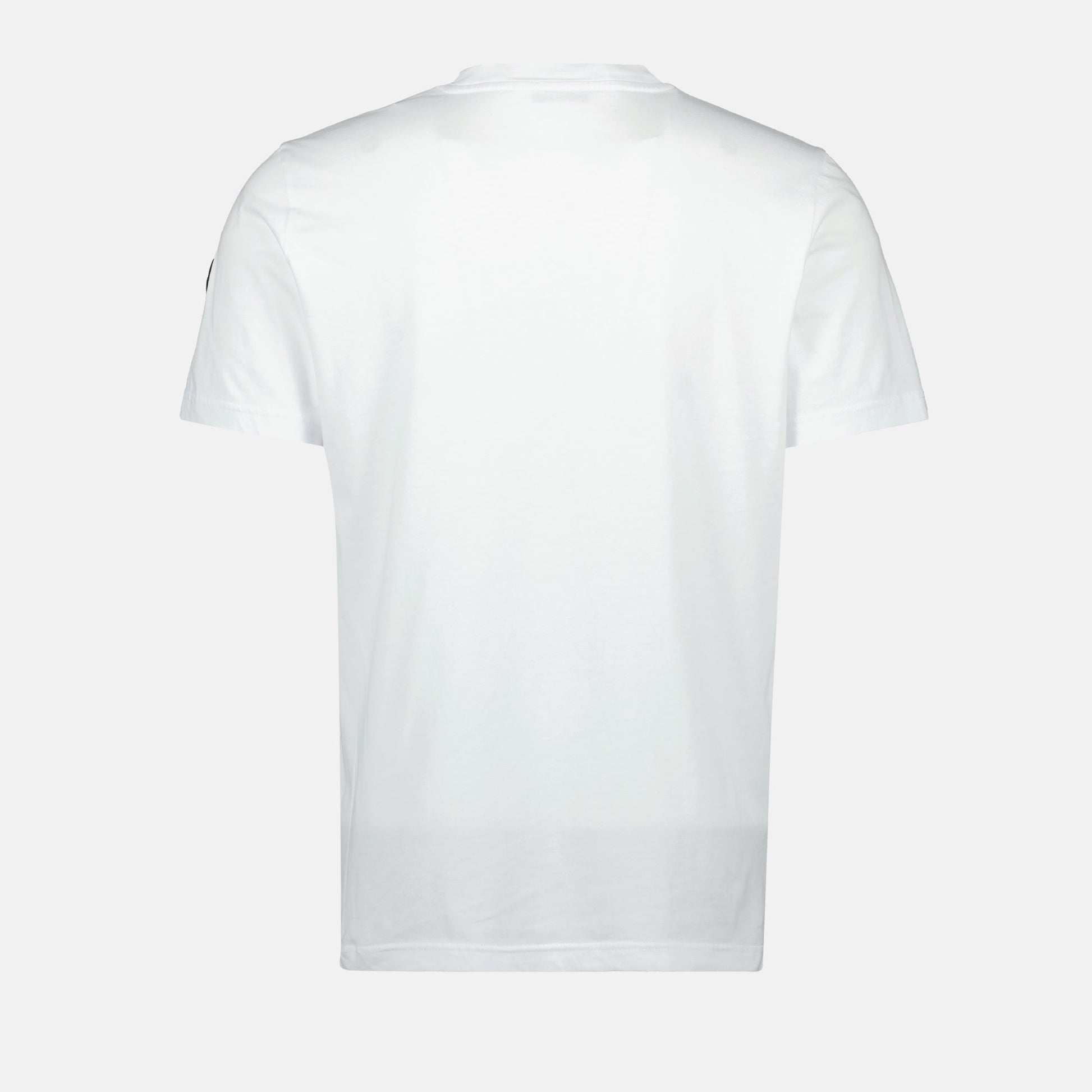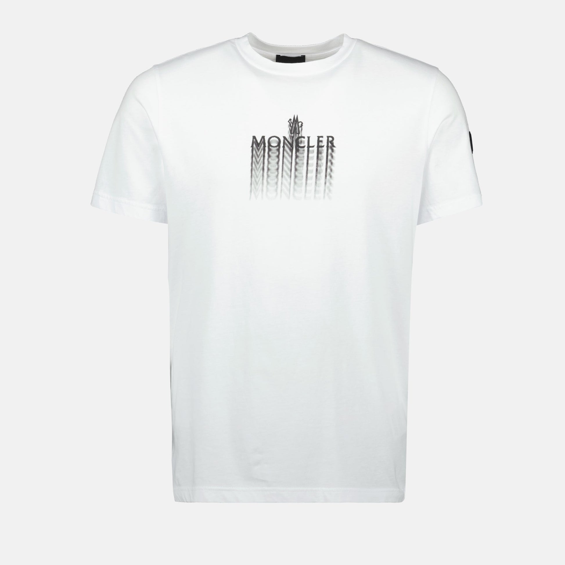 Embrace effortless style with this white distressed logo T-shirt, featuring a classic round neckline and short sleeves, tailored in a straight cut for a relaxed fit. The leather logo patch adds a refined touch, while the soft cotton jersey fabric ensures comfort and breathability. This piece is part of Moncler's Spring-Summer 2025 collection, effortlessly combining contemporary design with everyday wearability.