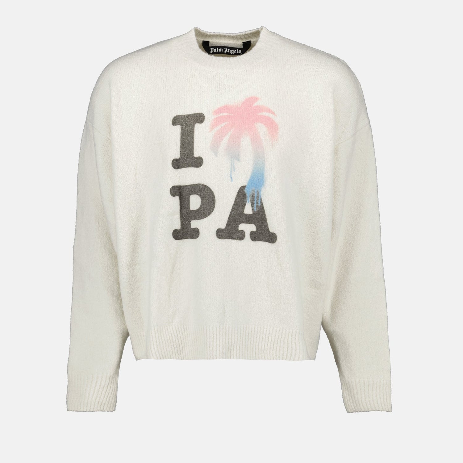 Embrace a blend of luxury and street fashion with the Palm Angels white sweater. This meticulously crafted sweater features the statement "I Love PA" boldly displayed on the front, making it a piece of both admiration and style. Designed with premium materials, this sweater ensures unparalleled comfort and elegance. The classic white color palette allows versatile styling, easily pairing with both casual and sophisticated attire. Elevate your wardrobe with this signature piece from Palm Angels.