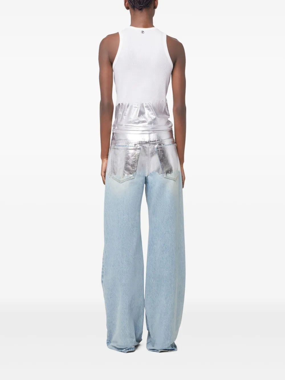 Elevate your wardrobe with this exquisite white jersey tank top from Rabanne. Designed as part of the Spring-Summer 2025 collection, it features a classic round neckline, slim cut, and shoulder straps for a flattering fit. The standout detail is the striking silver foil accent, complemented by a unique piercing at the hem, adding an element of intrigue. This versatile piece is perfect for layering or wearing on its own, embodying a modern yet sophisticated aesthetic.