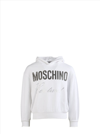 The White Kids’ Hooded Sweatshirt by Moschino combines elegance with playful charm, making it a must-have for any young fashion enthusiast. Crafted from premium materials, the hoodie ensures maximum comfort and longevity. The pristine white hue adds a touch of sophistication, while the brand's signature logo subtly enhances its luxurious appeal. Featuring a classic hooded design, it's ideal for providing warmth on cooler days, making it both a functional and stylish addition to your child's wardrobe.