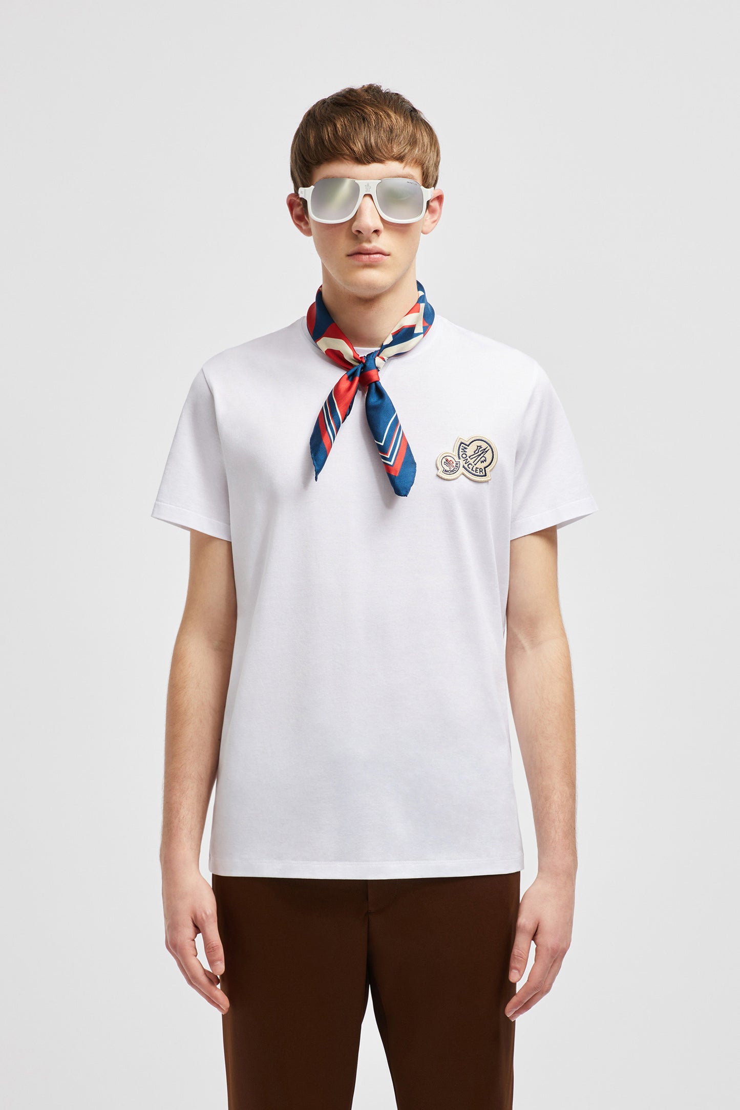 Discover the epitome of refined casual wear with our Moncler white logo T-shirt, specially curated for the sophisticated wardrobe. This remarkable piece features a classic white hue adorned with the iconic Moncler logos, exuding both style and contemporary appeal. Expertly crafted for supreme comfort and a flawless fit, this T-shirt is a must-have item that seamlessly blends luxury with modern fashion.