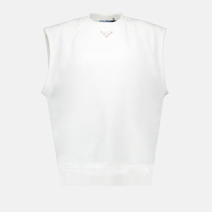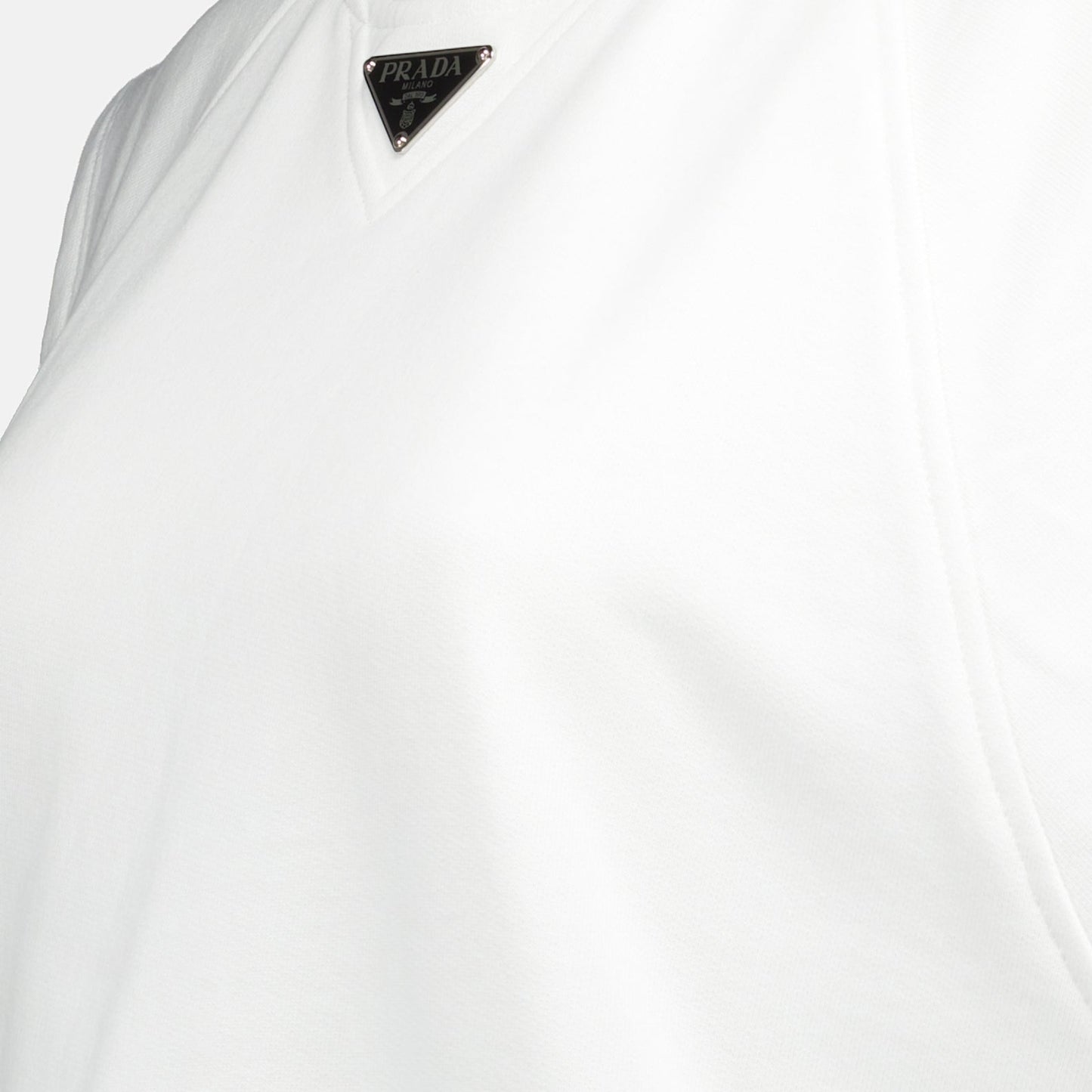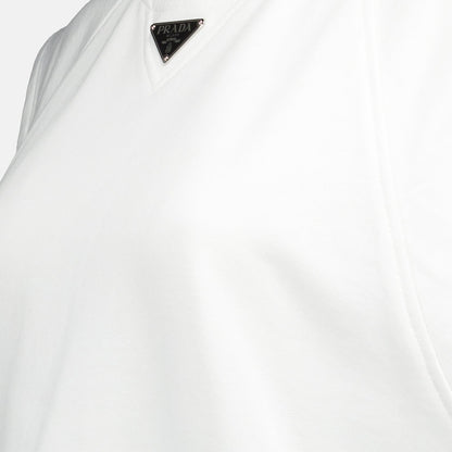 Prada, White T-Shirt, Triangle Logo, Women's Luxury T-Shirt, Designer Clothing