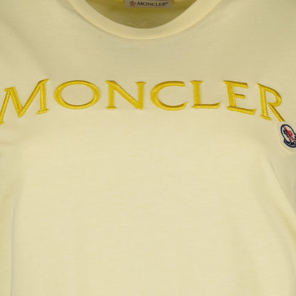 Introducing the exquisite Yellow Logo T-shirt by Moncler, a definitive statement piece for those who appreciate luxury and style. This T-shirt stands out with its vibrant yellow hue, ensuring you remain at the forefront of fashion while exuding sophistication.